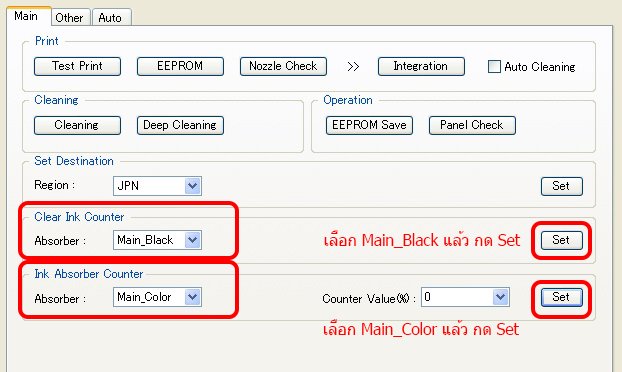 Ink Absorber Counter เลือก Main_Color แล้วคลิก Set